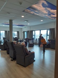 Það er mikið um að vera í Lífsgæðakjarnanum á Sléttunni þessa dagana. Nú í vikunni hófst starfsemi dagdvalar Hrafnistu. Dagdvölin hefur fengið heiti Röst og þar verða 30 dagdvalarými. Þetta er sjötta dagdvölin hjá Hrafnistu. Einnig opnuðu bæði hárgreiðslustofan og fótaaðgerðastofan. Á meðan takmarkanir Almannavarna gilda, þá eru stofurnar einungis opnar fyrir íbúa Hrafnistu. Þrátt fyrir það þá hefur verið fullt út úr dyrum hjá Huldu á hárgreiðslustofunni og Ástu á fótaaðgerðastofunni enda margir komnir með loðna lubba eftir samkomubannið. Gestir dagdvalarinnar, og hjá Huldu og Ástu, hafa verið himinlifandi með aðstöðuna, finnst hún helst til fín ef eitthvað er. Brátt opnar verslunin og þá er bara að bíða eftir að geta opnað dyrnar og hleypt fleirum inn þegar græna ljósið kemur frá þríeykinu.