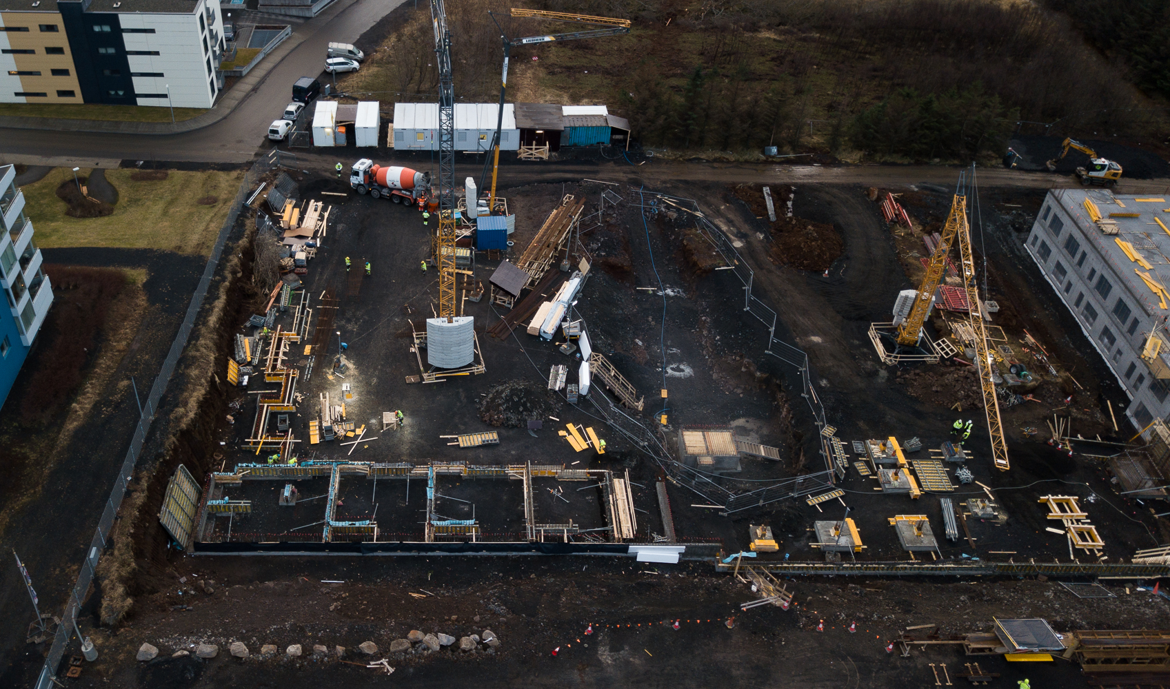 Framkvæmdirnar við Sléttuveginn eru í góðum gangi. Fyrstu tvær hæðir hjúkrunarheimilisins eru uppsteyptar kominn vísir að þriðju hæðinni. Einnig uppsteypa á leiguíbúðunum og þjónustumiðstöðinni hafin.