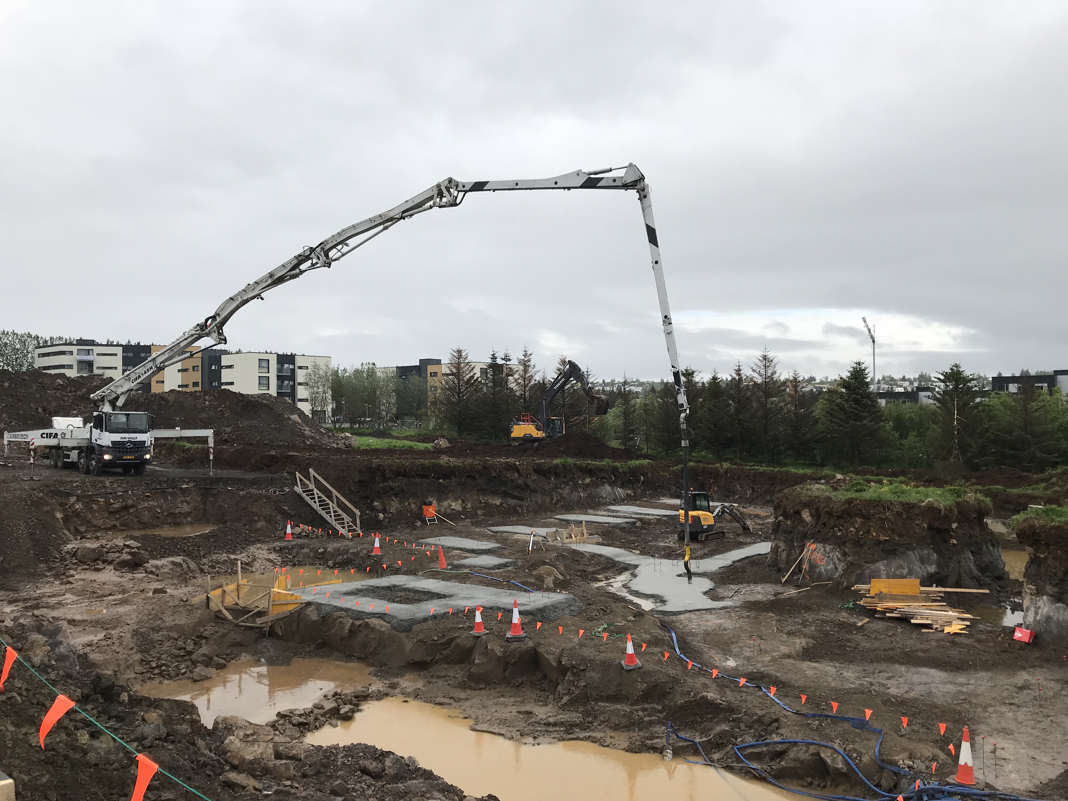 Í dag var enn einum áfanga náð í uppbyggingu fyrir aldraða við Sléttuveg. Fyrstu steypubílarnir mættir á svæðið og steypt voru svokölluð þrifalög undir sökkla hjúkrunarheimilisins. Steyptir voru 35m³ en reiknað er með að í heildina fari allt að 3170m³ af steypu í bygginguna. Uppsteypa hjúkrunarheimilisins er í höndum verktakafyrirtækisins Mannverks sem var lægstbjóðandi í verkið. Samkvæmt tímaáætlun á uppsteypu að vera lokið fyrir árslok 2018.