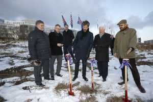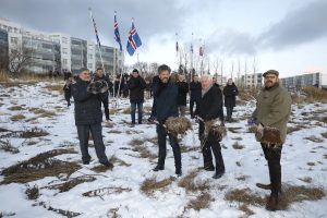 Enn einn áfanginn í langri sögu Sjómannadagsráðs við uppbyggingu fyrir aldraða átti sér stað í dag þegar skóflustunga var tekin að nýju hjúkrunarheimili við Sléttuveg, en það er hluti af nýju 21 þúsund fermetra öldrunarsetri í Fossvogi. Skóflustunguna tóku þeir Guðmundur Hallvarðsson, fyrrverandi formaður Sjómannadagsráðs, Dagur B. Eggertsson borgarstjóri Reykjavíkur og Óttarr Proppé heilbrigðisráðherra. Athöfnin er táknrænt upphaf verklegra framkvæmda við nýtt hjúkrunarheimili Hrafnistu fyrir 99 íbúa, en gert er ráð fyrir að jarðvinna við það hefjist í desember. Fljótlega hefjast einnig framkvæmdir við byggingu þjónustumiðstöðvar, sem Sjómannadagsráð mun eiga og reka, og þriggja 14 þús. fm. fjölbýlishúsa með 140 leiguíbúðum Naustavarar, dótturfyrirtækis Sjómannadagsráðs. Öldrunarsetrið í Fossvogsdal er fjórða verkefnið að þessu tagi sem Sjómannadagsráð hefur ráðist í frá stofnun þess 25. nóvember 1937, fyrir réttum 80 árum. Áður hefur Sjómannadagsráð staðið að sambærilegri uppbyggingu í Laugarási í Reykjavík, Hraunvangi í Hafnarfirði og Boðaþingi í Kópavogi.