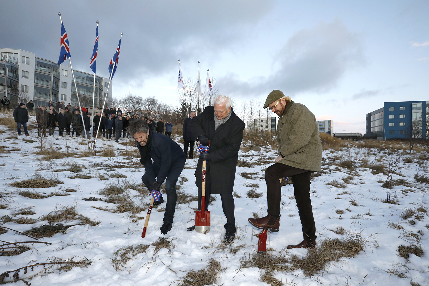 Enn einn áfanginn í langri sögu Sjómannadagsráðs við uppbyggingu fyrir aldraða átti sér stað í dag þegar skóflustunga var tekin að nýju hjúkrunarheimili við Sléttuveg, en það er hluti af nýju 21 þúsund fermetra öldrunarsetri í Fossvogi. Skóflustunguna tóku þeir Guðmundur Hallvarðsson, fyrrverandi formaður Sjómannadagsráðs, Dagur B. Eggertsson borgarstjóri Reykjavíkur og Óttarr Proppé heilbrigðisráðherra. Athöfnin er táknrænt upphaf verklegra framkvæmda við nýtt hjúkrunarheimili Hrafnistu fyrir 99 íbúa, en gert er ráð fyrir að jarðvinna við það hefjist í desember. Fljótlega hefjast einnig framkvæmdir við byggingu þjónustumiðstöðvar, sem Sjómannadagsráð mun eiga og reka, og þriggja 14 þús. fm. fjölbýlishúsa með 140 leiguíbúðum Naustavarar, dótturfyrirtækis Sjómannadagsráðs. Öldrunarsetrið í Fossvogsdal er fjórða verkefnið að þessu tagi sem Sjómannadagsráð hefur ráðist í frá stofnun þess 25. nóvember 1937, fyrir réttum 80 árum. Áður hefur Sjómannadagsráð staðið að sambærilegri uppbyggingu í Laugarási í Reykjavík, Hraunvangi í Hafnarfirði og Boðaþingi í Kópavogi.