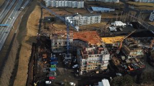 Þetta myndband var tekið seinasta föstudag. Það var mikið um að vera við Sléttuveginn þennan daginn. Á staðnum er tvö verktakafyrirtæki að vinna við uppsteypu. Annað við hjúkrunarheimilið og hitt við þjónustumiðstöðina og íbúðirnar. Samhliða því, er verið að setja glugga í, einangra og undirbúa fyrir klæðningu á hjúkrunarheimilinu. Þar er innivinna er komin á fullt skrið í, innveggir langt komnir á fyrstu þremur hæðunum og raf- og pípulagnavinna er komin vel af stað. Samanlagt eru vel á annað hundrað manns við störf á svæðinu.